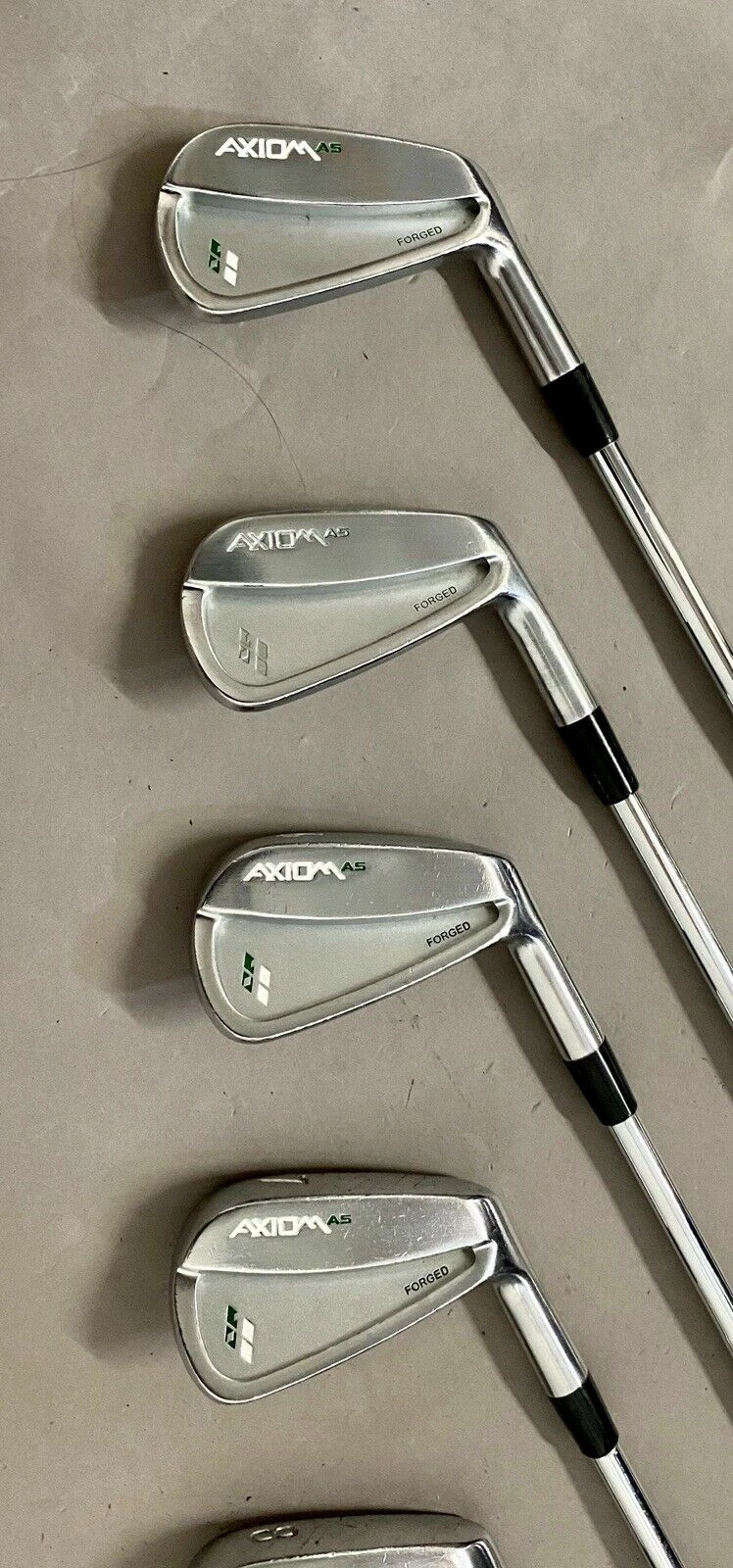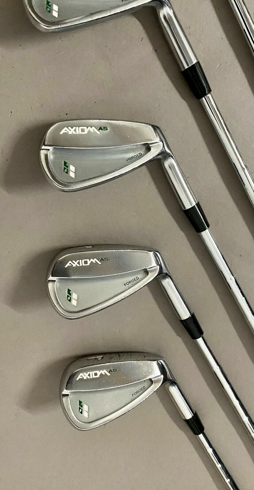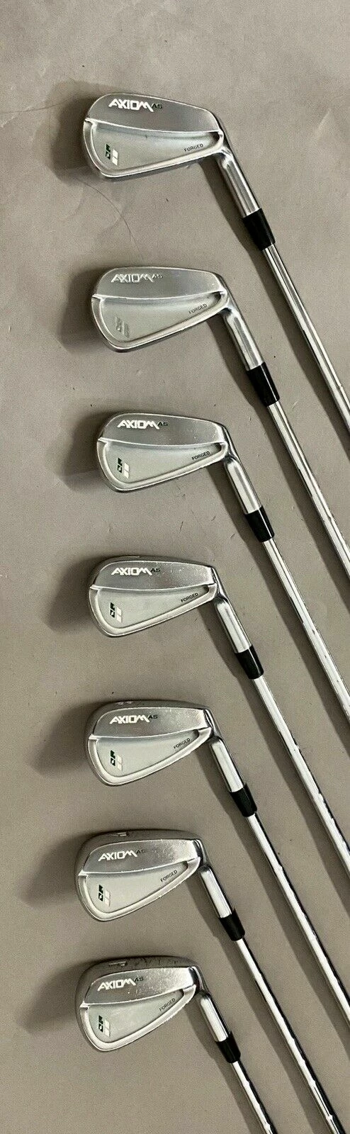 Up for sale is a Right Handed AXIOM AS Forged Irons 4-PW Tour 130g X-Stiff Flex Steel Golf Club Set (7 Club Set)