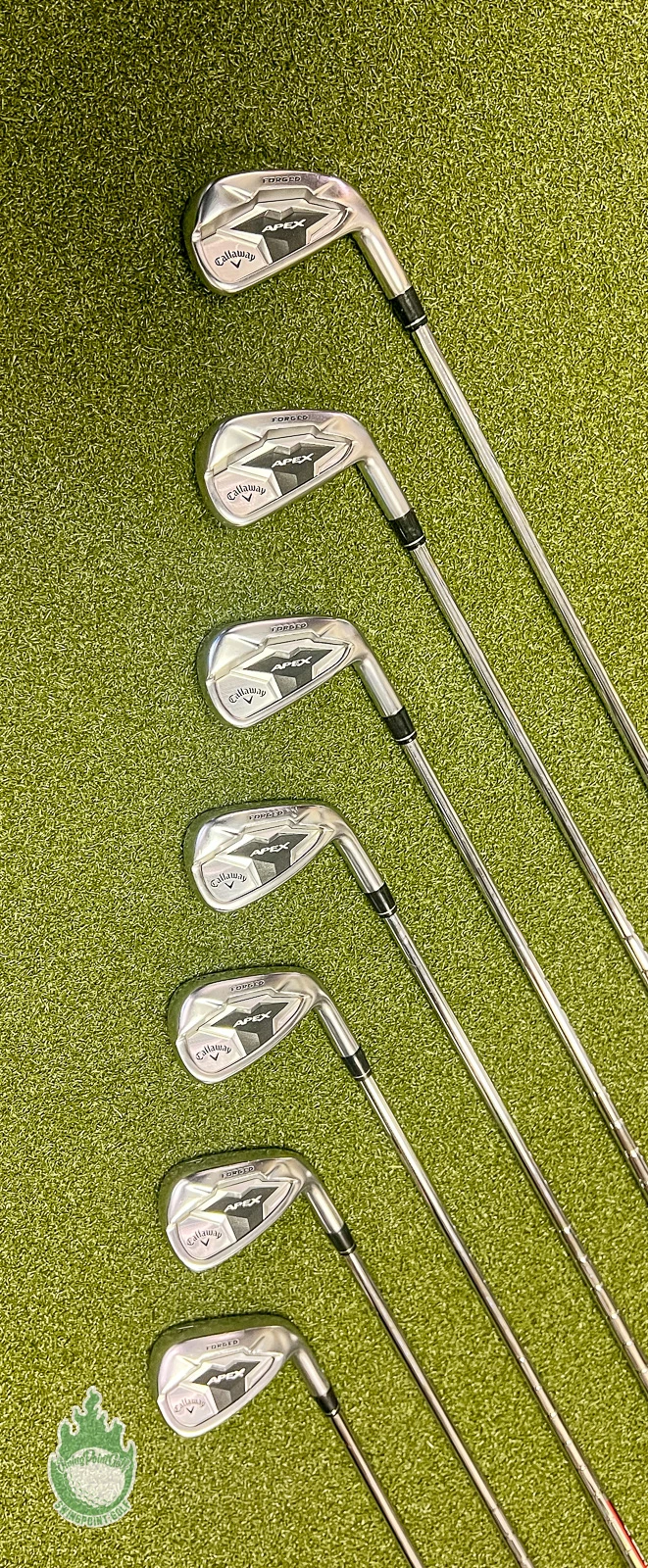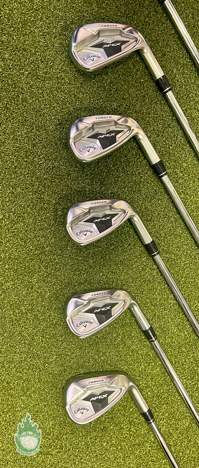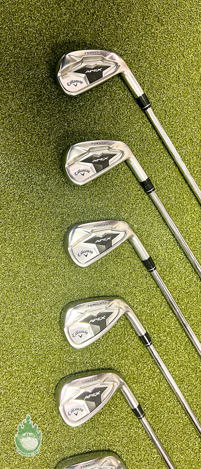 Up for sale is a Used Right Handed Callaway APEX Forged ’19/CF19 Irons 5-PW/AW Elevate 95g Regular Steel Set (7 Club Set)
