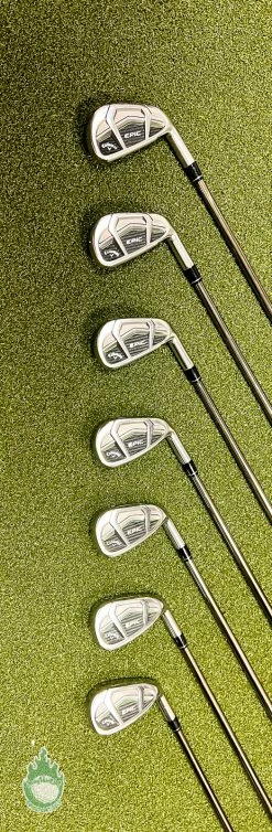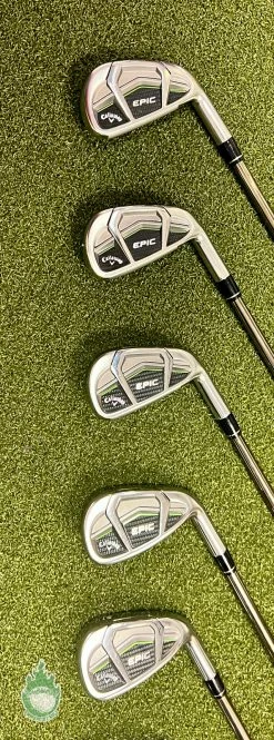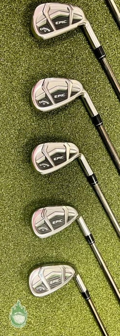 Up for sale is a Used Right Handed Callaway EPIC CF17 Irons 5-PW/AW recoil ES 780 F4 Stiff Graphite Golf Set (7 Club Set)