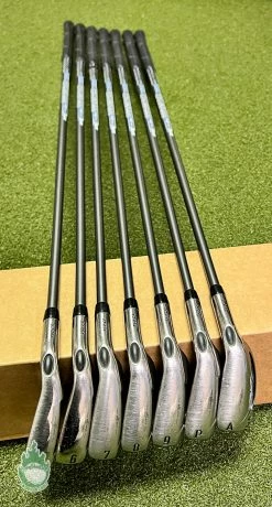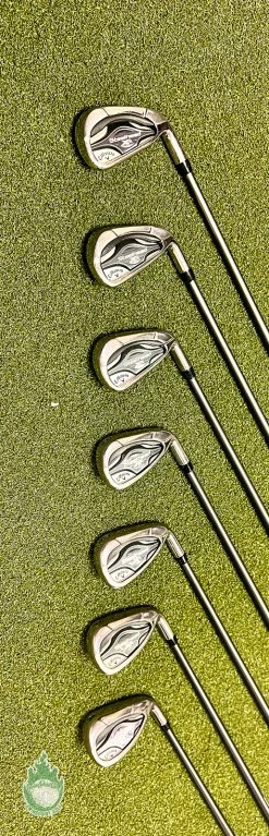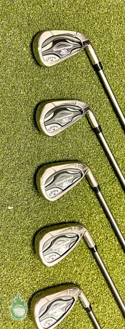 Up for sale is a Used Right Handed Used Callaway Steelhead XR Irons 5-PW/AW Program 55g Senior Graphite Golf Set (7 Club Set)