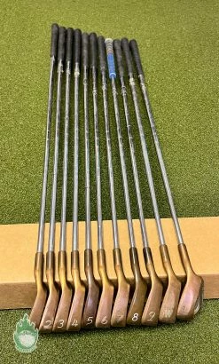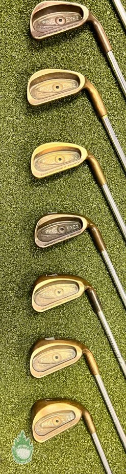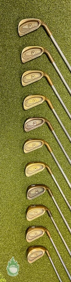 Up for sale is a Used Right Handed Ping Black Dot Eye 2 Beryllium Copper Irons 1-PW/LW Stiff Steel Golf Set (11 Club Set)