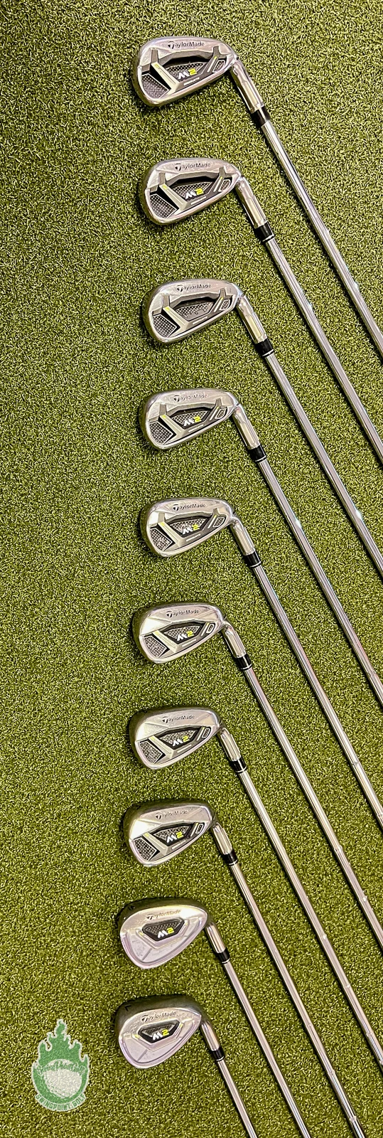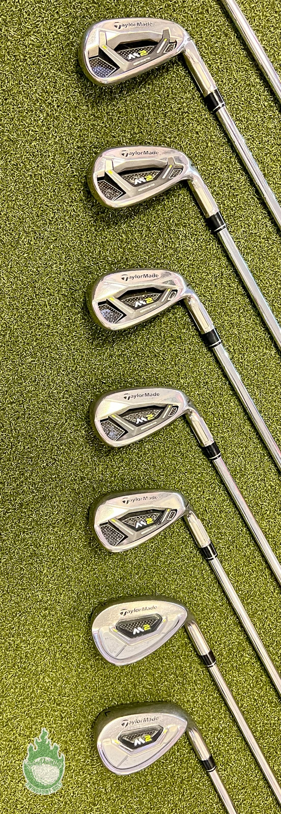Up for sale is a Used RH 2017 TaylorMade M2 Irons 4-PW/AW/SW/LW 88g Regular Flex Steel Golf Set (10 Club Set)