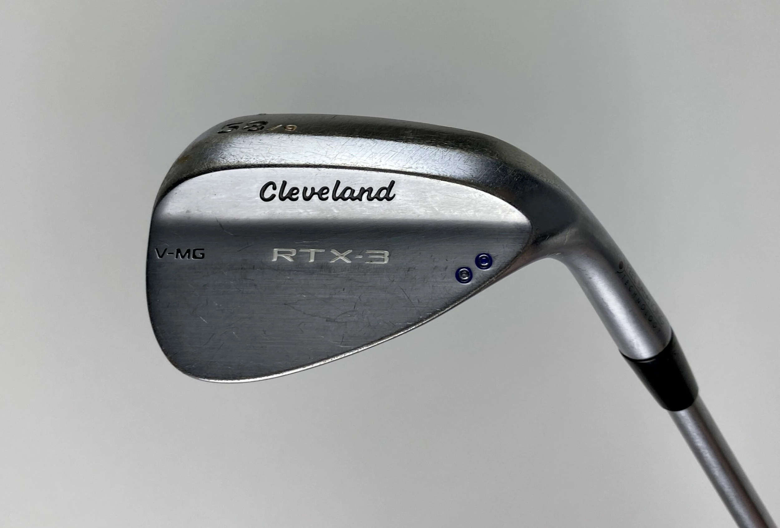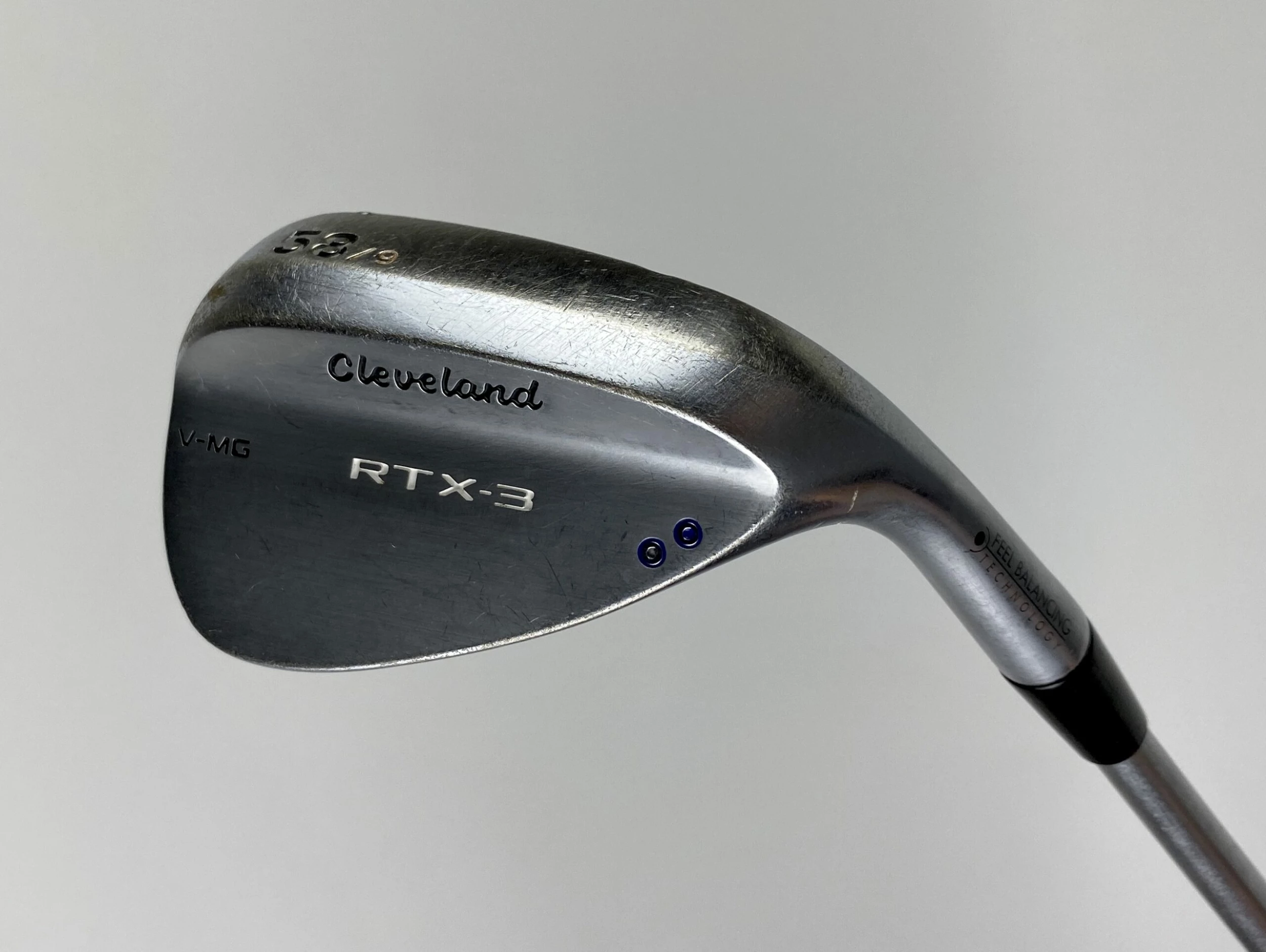 Up for sale is a Used Right Handed Cleveland RTX-3 V-MG Satin Wedge 58*-9 KBS 130 X-Stiff Flex Steel Golf