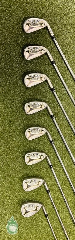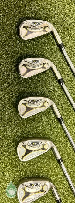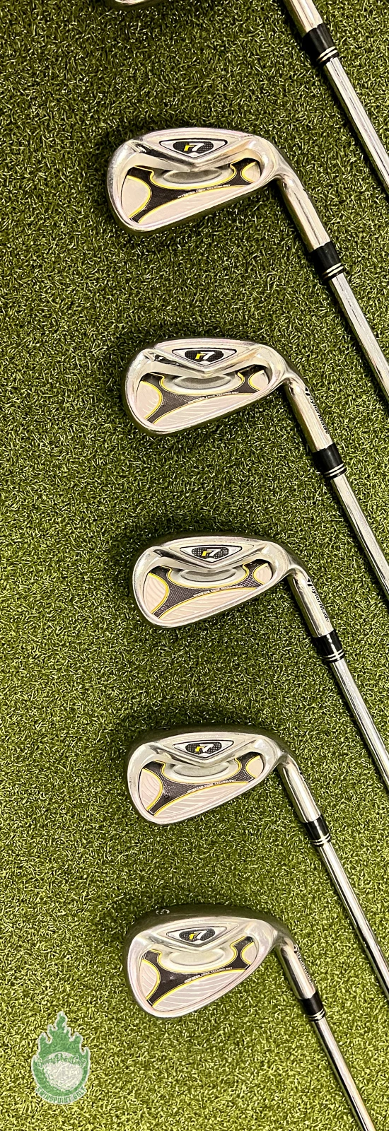 Up for sale is a Used Right Handed TaylorMade r7 Irons 4-PW/SW 90g Stiff Steel Golf Club Set (8 Club Set)